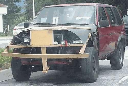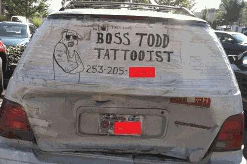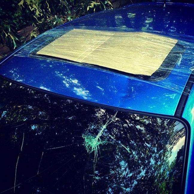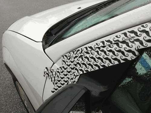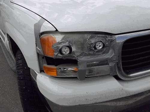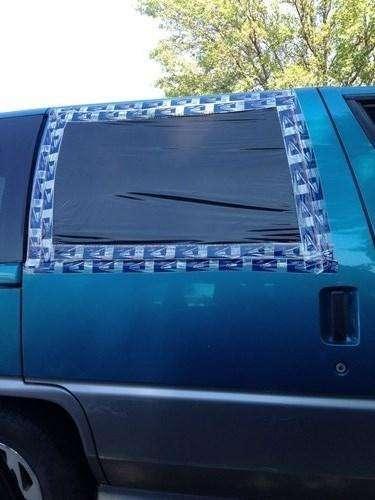 5. Votre pare-brise est cassé ? Utilisez du scotch pour le réparer et profitez-en pour faire votre pub !