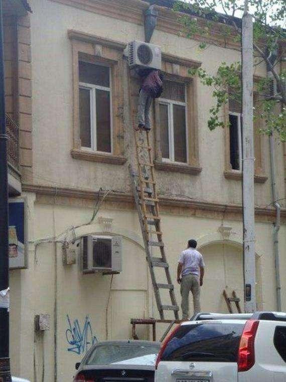 23. Une échelle qui soutient une échelle, qui soutient une échelle qui soutient un homme !
