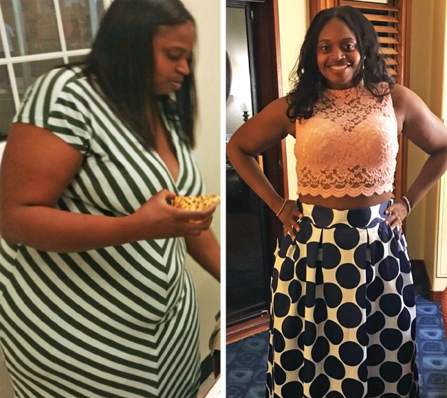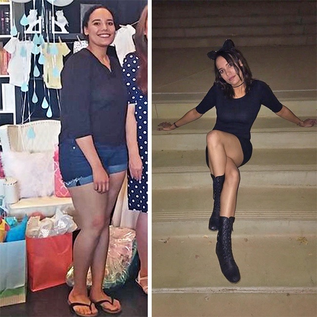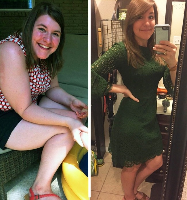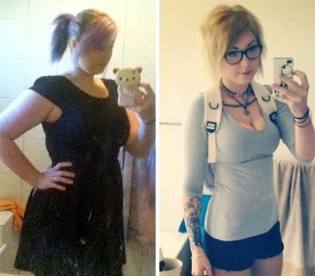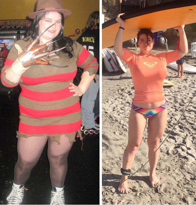 9. « J'ai 25 ans et je mesure 1,68 m. Je pesais 168 kg et j’ai réussi à perdre 77,5 kg en 11 mois. Chaque jour je m’étonne devant ma silhouette. Je pèse aujourd’hui 90 kg et mon but est d’arriver à 63. Je sais que je peux le faire ! »