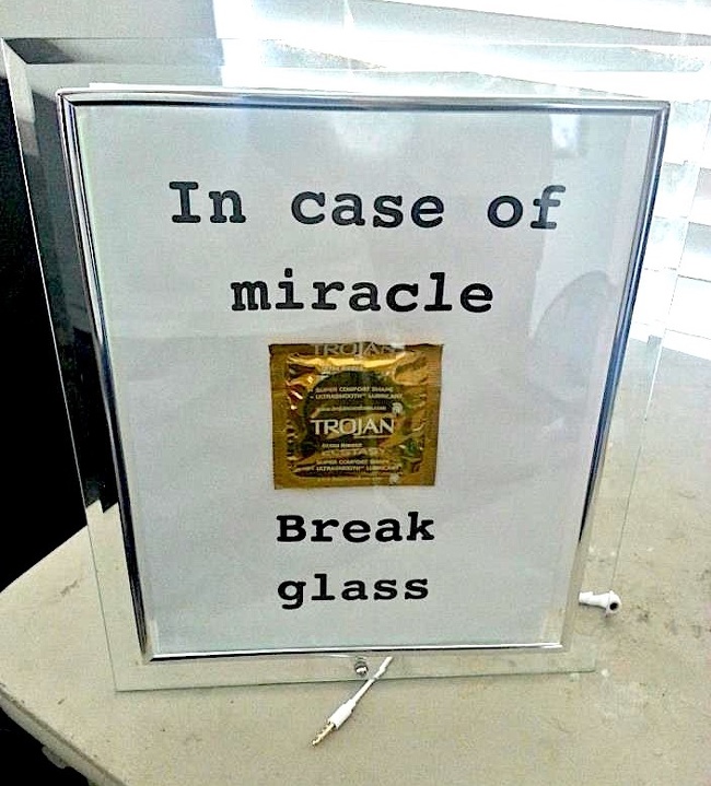« En cas de miracle, briser la vitre »