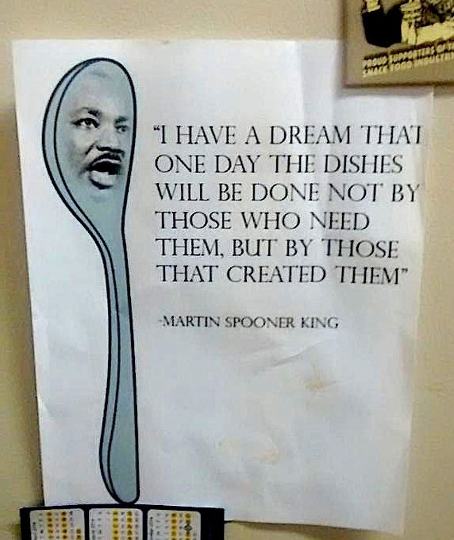 « J’ai fait le rêve qu’un jour, la vaisselle serait faite non pas par ceux qui en ont besoin, mais par ceux qui l’ont fabriquée – Martin Cuillère King »
