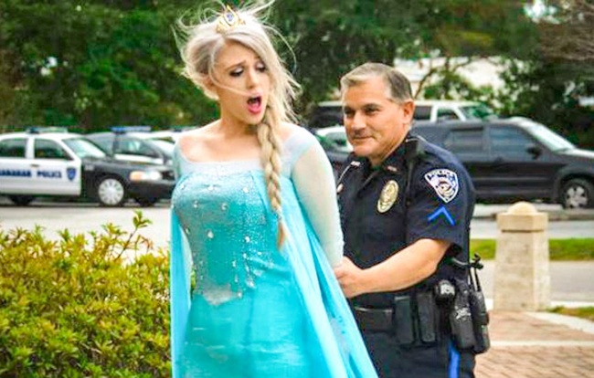 Les faits se sont déroulés à Hanahan en Caroline du Sud. Une actrice habillée comme Elsa de La Reine des Neiges a été arrêtée, car elle était accusée de vouloir geler la fontaine de l’Hôtel de Ville !