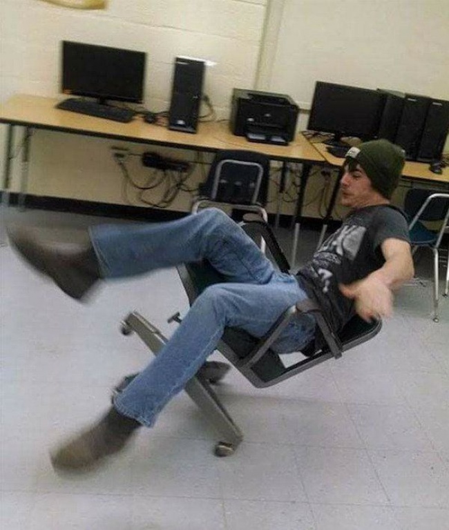 10. « Mon pote a décrété qu’il était un maître dans le balancement de la chaise, sauf qu’il n’a pas pu finir sa phrase… »