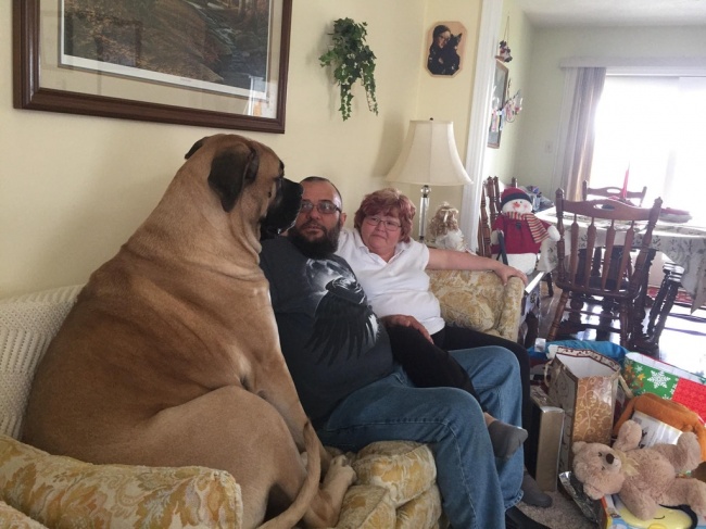 13. « Voici la plus belle photo de famille que nous ayons : mon père, ma mère et notre Mastiff Maddie ! »