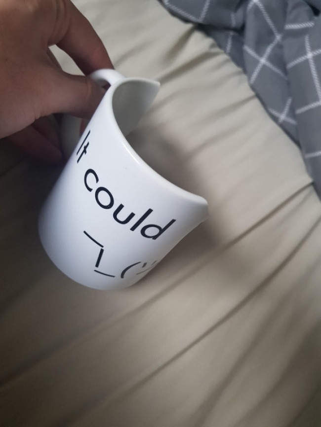 3. Cette tasse où il est inscrit « cela pourrait être pire » vient de se casser… Prémonition ou...?