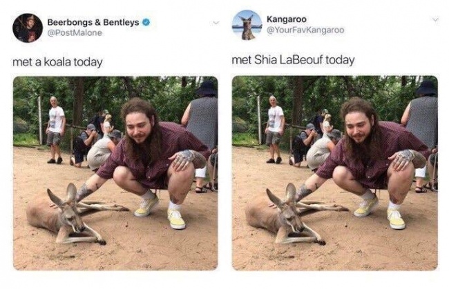 « Post Malone a rencontré un koala aujourd’hui » - « Le kangourou a rencontré Shia LaBeouf aujourd’hui »