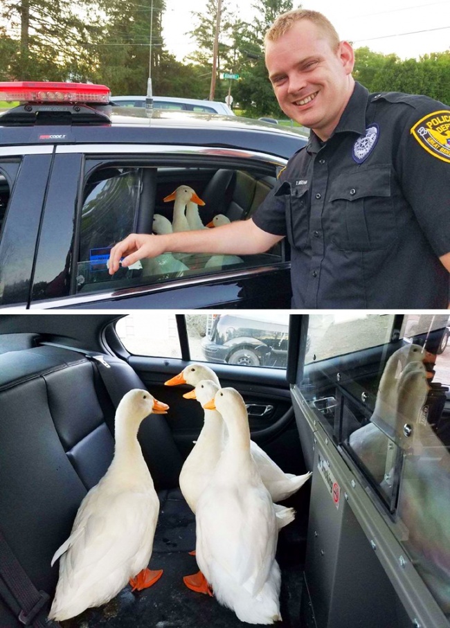 3. Comment et pourquoi des oies ont-elles pu atterrir dans la voiture d’un policier ?!