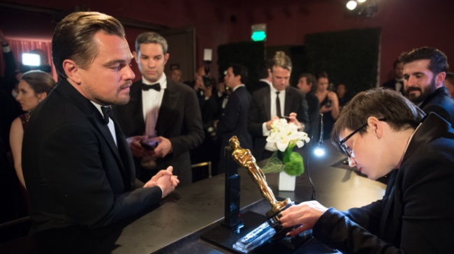 27. La petite blague de Leonardo DiCaprio qui demande au graveur de son Oscar s’il le fait tous les ans ! Quel farceur !