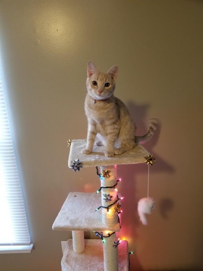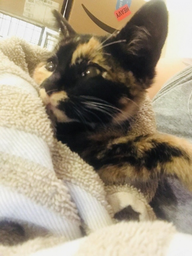 En allant chercher sa nièce à l’aéroport à 22 h 30, la veille de Noël, cette femme a été abordée par les employés des réclamations de bagages. Ils lui ont expliqué que quelqu’un avait abandonné et jeté un petit chaton, qu’ils l’ont sauvé, mais qu’ils ne pourraient pas le garder. C’est alors qu’ils ont amené la petite bête en lui suppliant de l’adopter. C’était Noël avant l’heure !