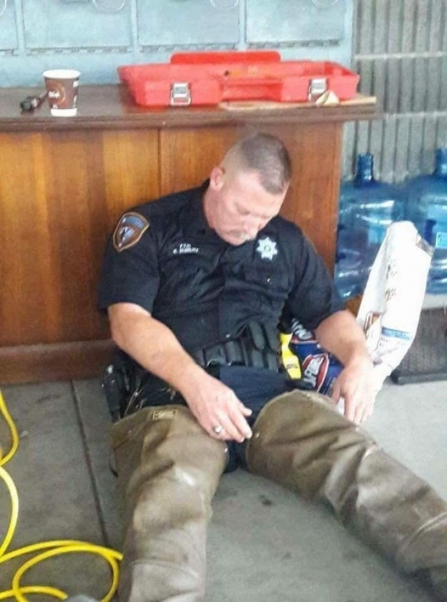 Ce policier a travaillé des heures et des heures pour sauver les victimes de l’ouragan Harvey. Il ne s’est arrêté que lorsqu’il s’est écroulé de fatigue…