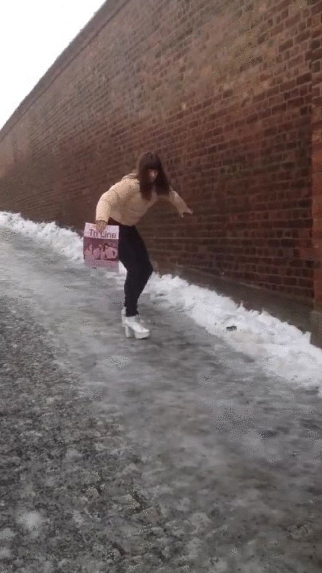 3. Une irréductible : même sur le verglas il faut qu’elle garde ses talons.
