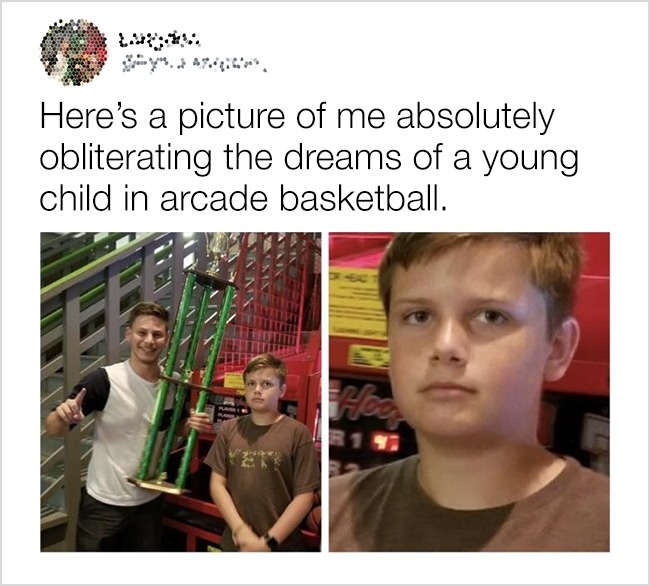 « Voici une photo de moi : je viens d’effacer les rêves d'un jeune prodige des jeux de basket-ball d’arcade »