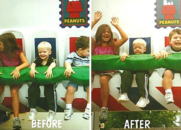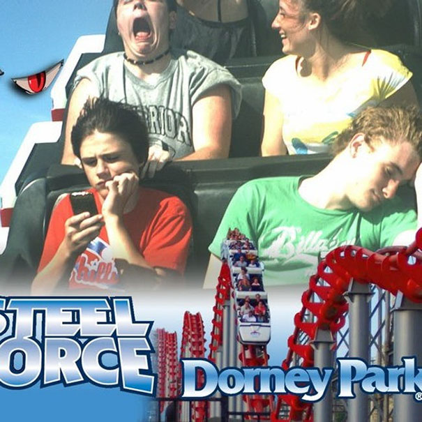 Les parcs d’attractions ont trouvé une solution plutôt originale de faire des bénéfices supplémentaires, en vous prenant en photo à des instants clés sur leurs animations à sensations. À la sortie, vous pouvez soit acheter vos clichés, soit les laisser. Que vous y alliez seul, en famille, en amoureux ou avec des amis, vous pouvez être sûr qu’au moins l’un d’entre vous aura une tête absolument terrible !