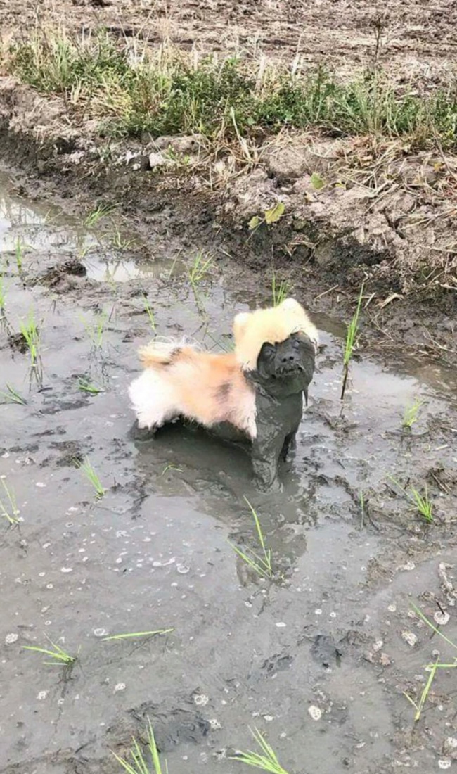 2. Il y a un tas d’autres endroits où ce chat pouvait s’installer, mais non… C’est dans la boue qu’il préfère se poser… !