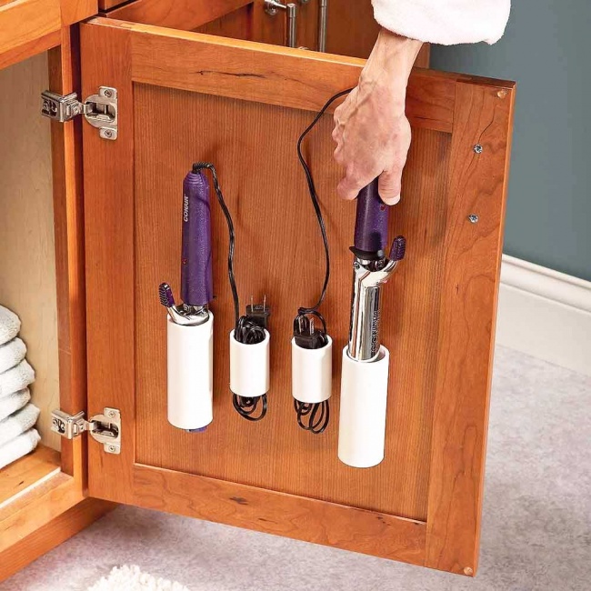 29. Rangez vos plaques lissantes et boucleurs électriques dans vos placards grâce à des tubes en plastique