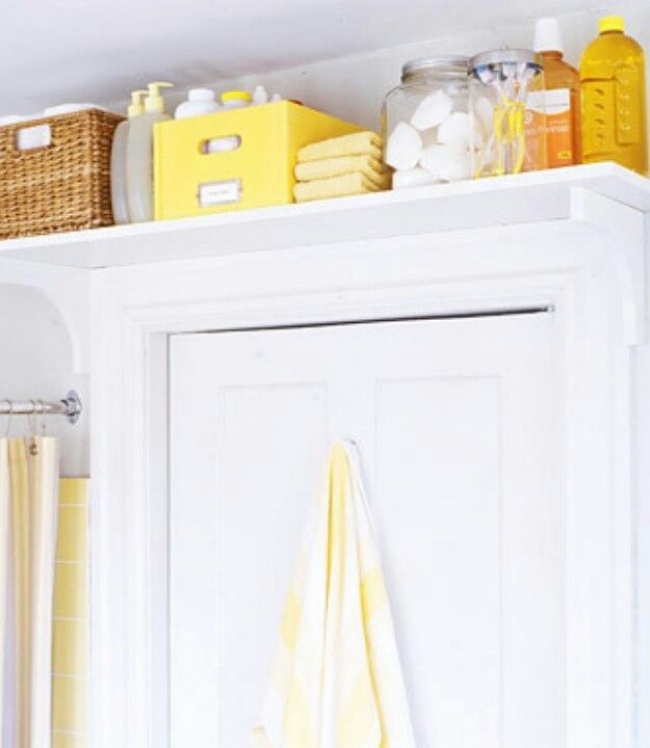 31. Placez une étagère au-dessus de votre porte pour ranger les affaires de toilette que vous utilisez peu