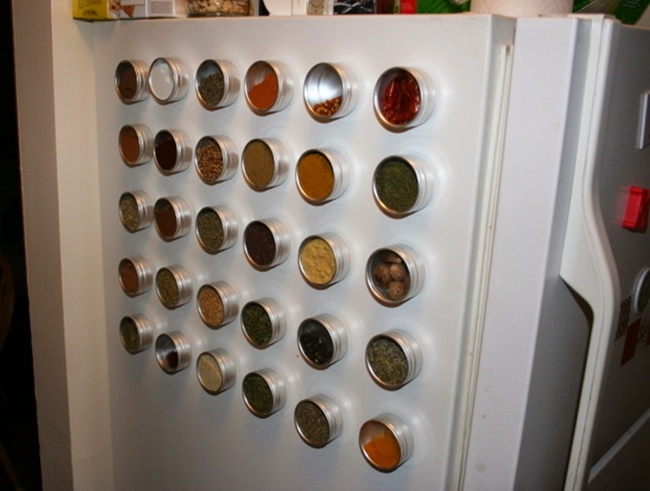 6. Collez des petits pots à épices aimantés sur votre frigo pour toujours avoir vos épices à portée de main