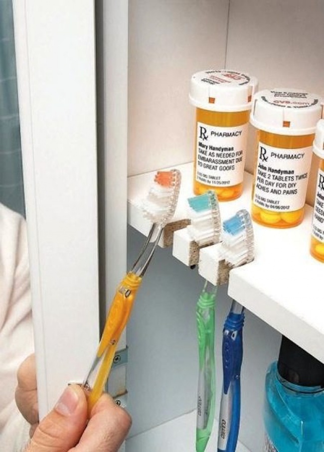 27. Une super idée pour ranger vos brosses à dents dans votre meuble de salle de bain : les encoches dans le placard