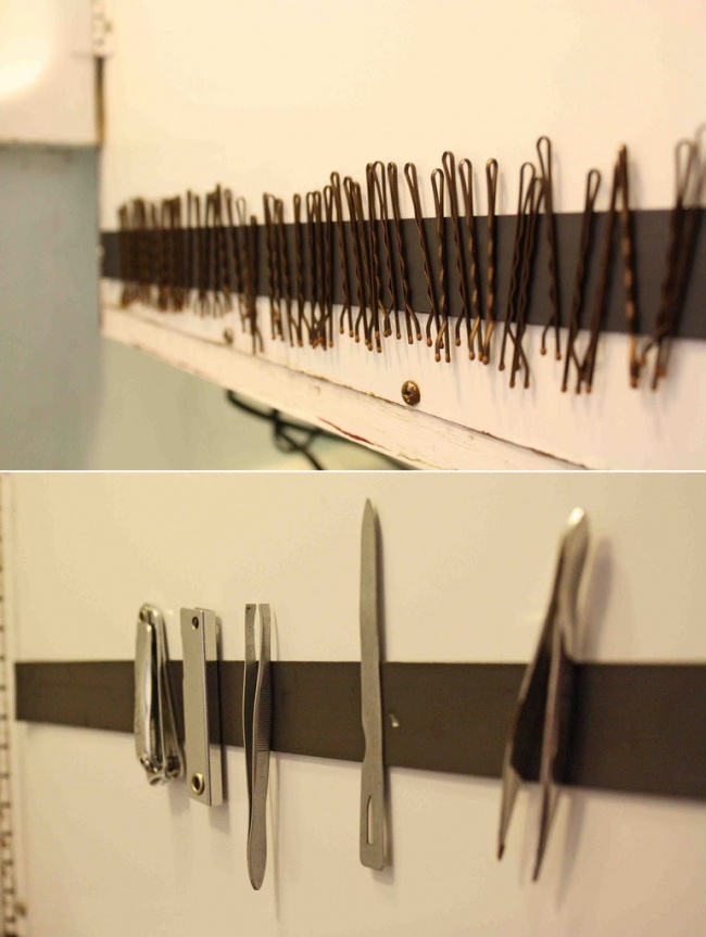 28. Collez une bande aimantée sur votre mur pour ne jamais perdre vos petits accessoires en métal