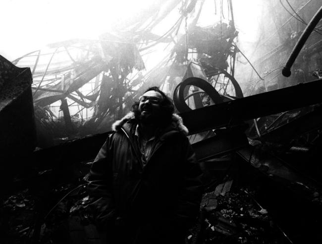 16. C’est une photo de Stanley Kubrick, en train de rire sur les ruines du studio Elstree servant pour le tournage de Shining, détruit dans un incendie
