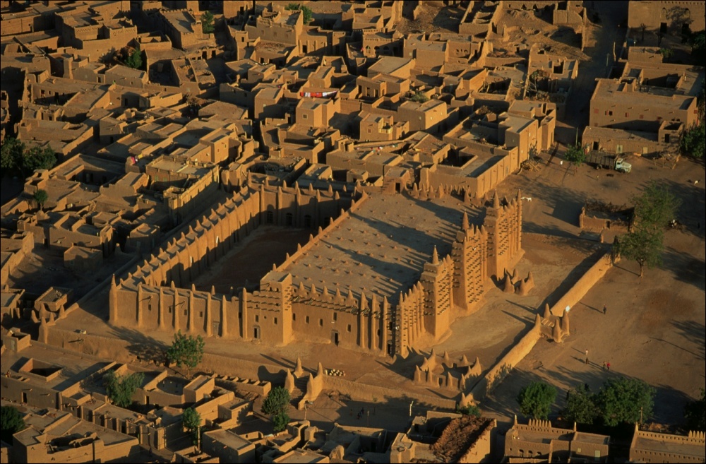 Cette Mosquée est entièrement construite en terre cuite et détient la première place sur le podium des plus grands bâtiments en terre cuite au monde. Elle a traversé un siècle sans prendre une seule ride. Inscrite depuis 1988 au patrimoine mondial de l'UNESCO, elle a été fermée au public en 1996, très probablement à cause d’un shooting pour le magazine Vogue.