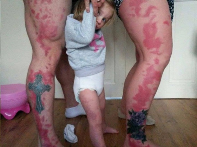 Lorsque la petite Honey-Rae est née, ses parents Tanya et Adam Phillips se sont rendu compte que leur bébé portait une tache de naissance sur sa jambe. Cette marque rarissime et rougeâtre monte des orteils jusqu’au niveau de la hanche. Tanya et Adam ont conscience que cette marque de naissance pourrait être un réel complexe pour leur petite fille. En effet, la différence dans ce monde n’est pas forcément vue de la meilleure façon. C’est pour cette raison qu’ils ont décidé de se faire tatouer, tous les deux, une marque similaire. Ainsi, elle n’est plus seule et reste une magnifique petite fille quoiqu’il arrive.
