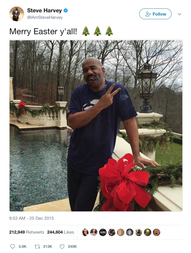 Mais loin de se laisser abattre, il use d’humour. En témoigne cette image publiée sur les réseaux sociaux, sur laquelle, la veille de Noël, il indique « Joyeuses Pâques à tous !?». Malgré sa bourde, il restera présentateur de l’émission en 2016.
