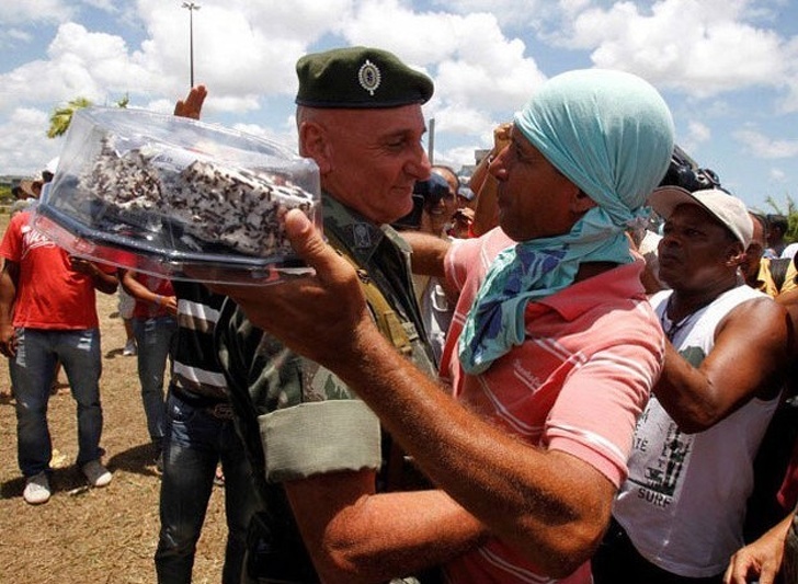 Alors que les manifestations battaient leur plein au Brésil, un officier a simplement demandé à la foule de faire une petite pause, car c’était le jour de son anniversaire. Mais il n’était pas du tout prêt à recevoir un cadeau aussi symbolique ! Non seulement il a obtenu ce qu’il a demandé : l’arrêt des émeutes, mais en plus, les manifestants lui ont apporté un gâteau ! Cette générosité a arraché une larme à l’officier.