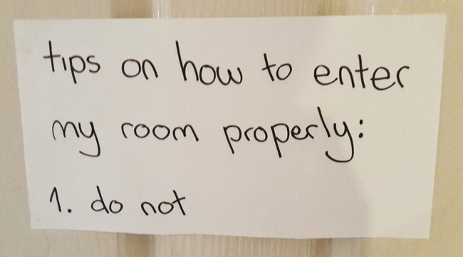 13. « Voici ce que ma sœur vient d’afficher sur la porte de sa chambre : Astuce pour entrer correctement dans ma chambre : 1. N’entre pas »