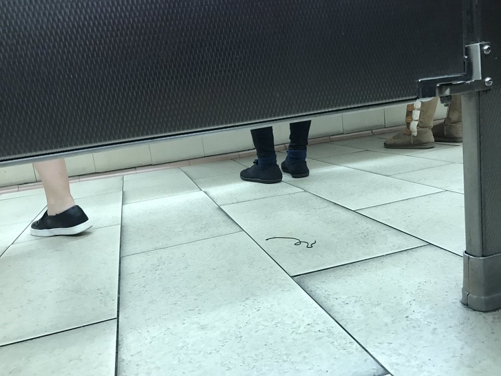16. Cet homme est entré accidentellement dans les toilettes pour femmes et attend le bon moment pour sortir incognito, mais ça ne désemplit pas !