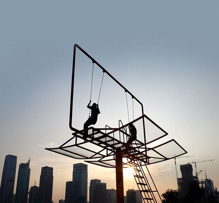 Une balançoire à la place d'un panneau d'affichage. Belle reconversion.