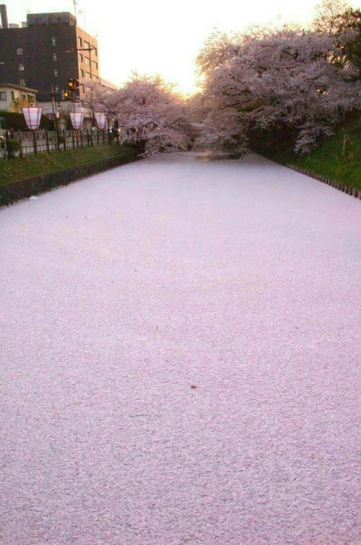 4. Les pétales de fleurs de cerisier recouvrent cette rivière