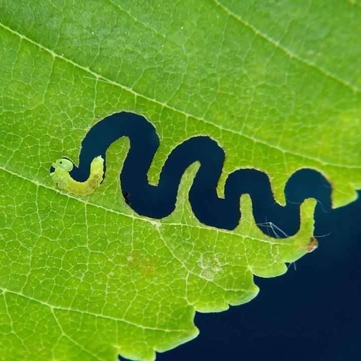 2. Cette chenille prend son petit déjeuner, après une cuite la veille
