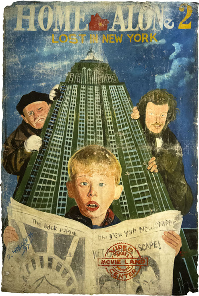 Durant les années 80 et 90, les Africains avaient pour habitude de remanier les affiches de films hollywoodiens, à leur manière. Elles devaient être excitantes et donner envie aux gens de venir voir le film. Plus l’affiche attirait les regards et plus le film avait de chance d’être un grand succès.