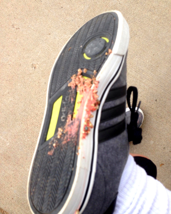 10. Voilà ce qu’il arrive lorsque l’on marche sur un chewing-gum frais que quelqu’un vient de jeter au sol…
