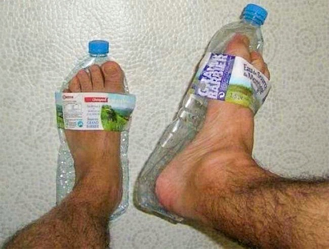 7. Vous avez perdu ou oublié vos tongs ? Pas de panique, les bouteilles d’eau sont parfaites pour les remplacer !