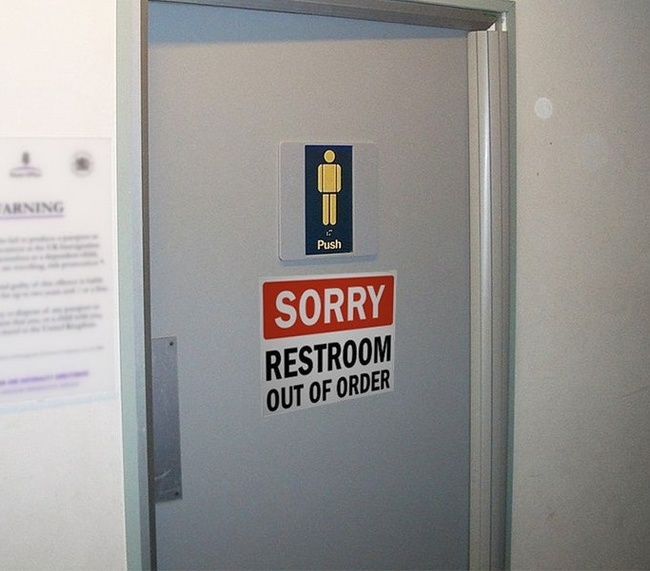 14. En déposant un panneau « hors service » sur les toilettes publiques, elles deviendront des toilettes privées !