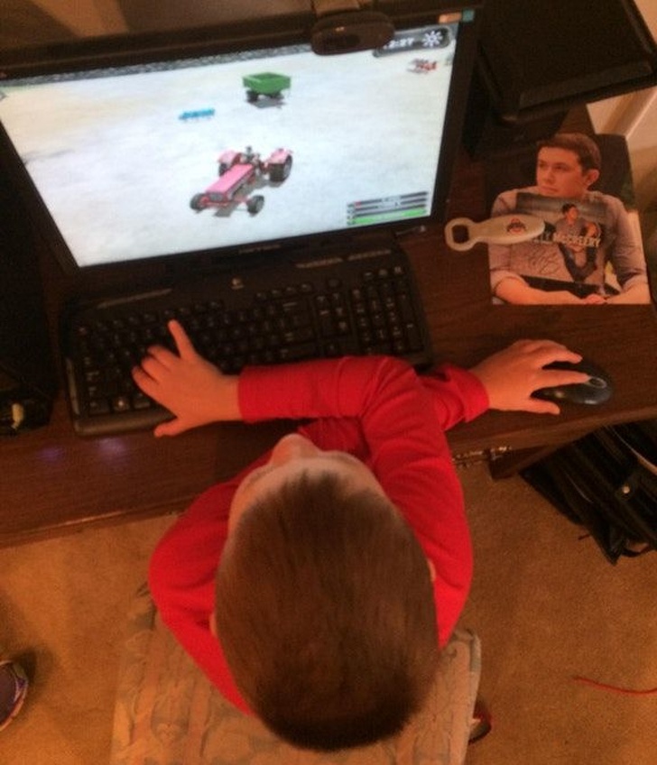 4. Cet enfant a une drôle de manière de jouer aux jeux sur PC…