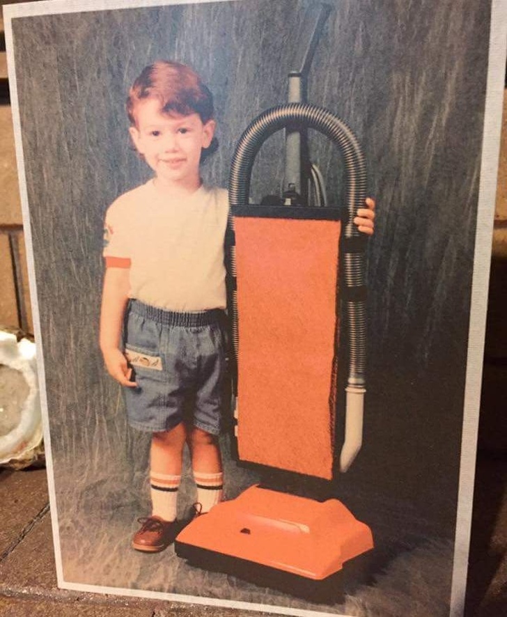13. L’aspirateur était son meilleur ami lorsqu’il était petit, à tel point que ses portraits le montraient toujours avec son aspirobot !