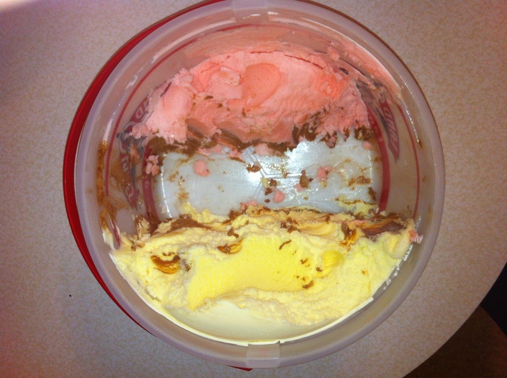 10. Cet enfant a mangé la glace par le milieu de façon à ce que personne ne s’en rende compte en voyant le pot de l’extérieur !