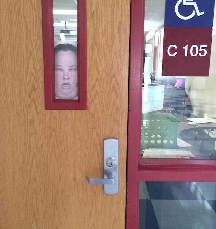 7. L’un des enfants de l’école a joué un tour aux professeurs en accrochant ce type de portrait partout sur les portes des classes…