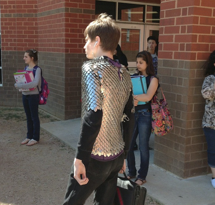18. Cet enfant porte une véritable cote de maille pour aller à l’école et même si ses professeurs lui ont demandé de la retirer plusieurs fois, il refuse systématiquement !