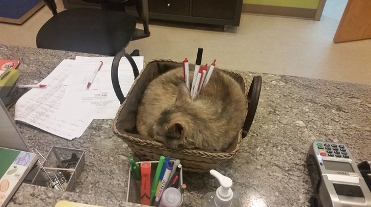 16. Est-il bon d’avoir un animal sur son lieu de travail ? La réponse est oui : il déstresse les gens et peut aussi faire office de porte-stylos !