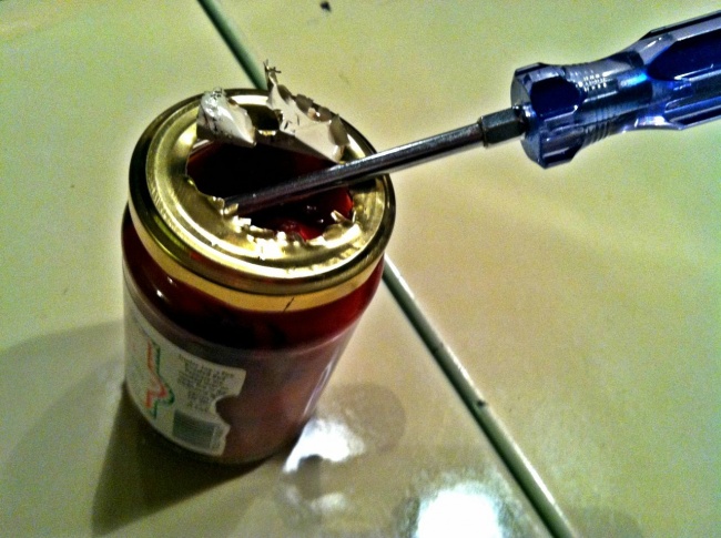 Personne pour l’aider à dévisser un couvercle récalcitrant ? Pas de problème, cette femme a anéanti celui-ci avec un tournevis !