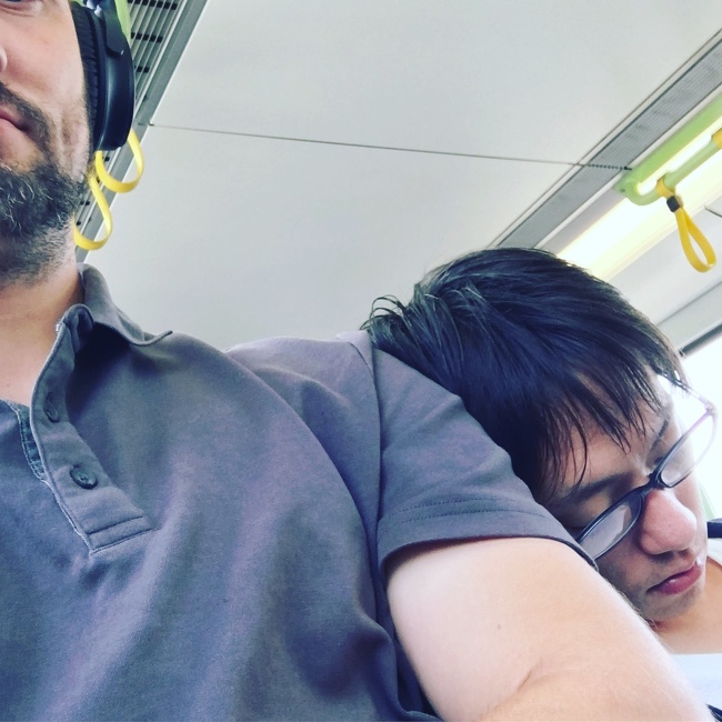 11. Il tombe de fatigue et se sert de l'épaule accueillante de son voisin pour se reposer
