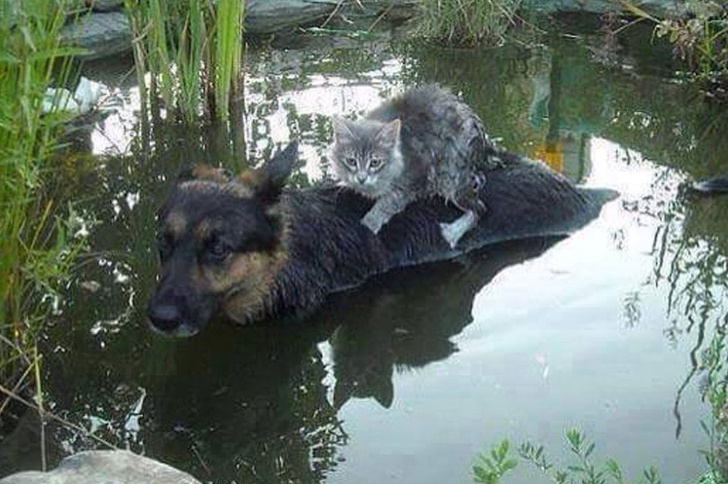 21. Ce chien a sauvé son ami le chat d'une noyade assurée