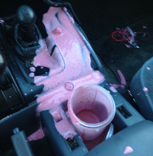 2. Nous sommes lundi, il est 8 h 45, vous êtes parti avec votre smoothie, car vous n’avez pas eu le temps de déjeuner. Vous êtes maintenant coincé dans les embouteillages et soudainement, le type derrière vous vous rentre dedans… Le smoothie se renverse et c’est le double drame...