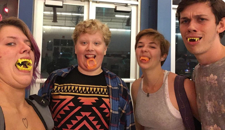 14. Oups… Il n’a pas compris le concept du dentier de Dracula !