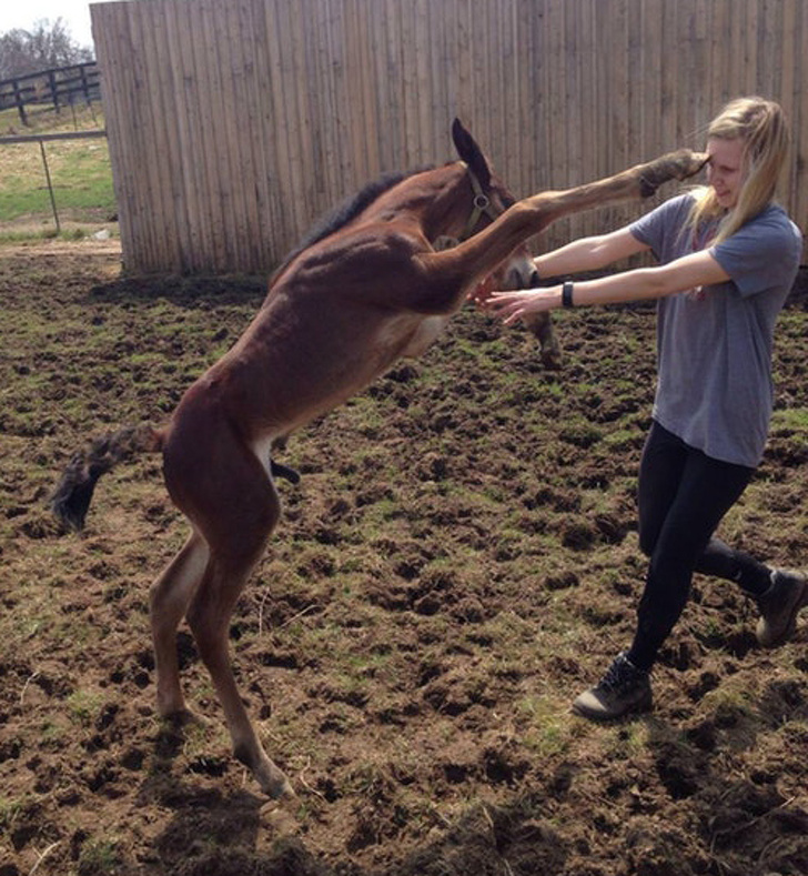 23. Le pauvre chien a reçu un sacré coup de pied lorsque cette maman a sauté pour la photo !