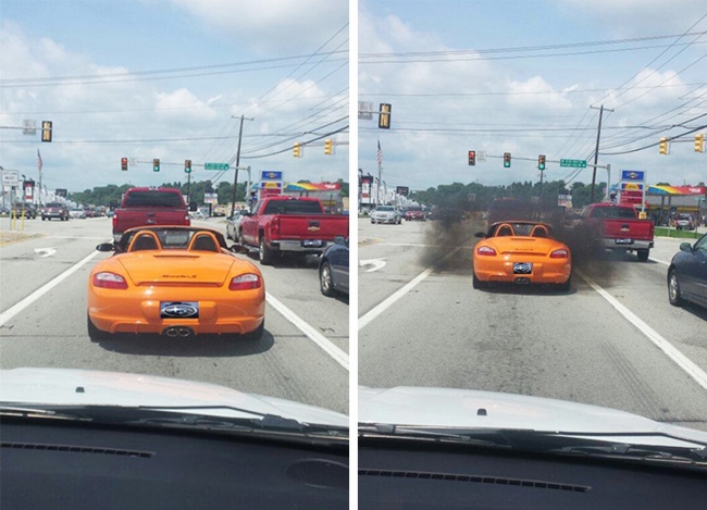 8. Le conducteur de la Porsche s’est montré très grossier, c’est la raison pour laquelle celui de devant s’est permis de se venger
